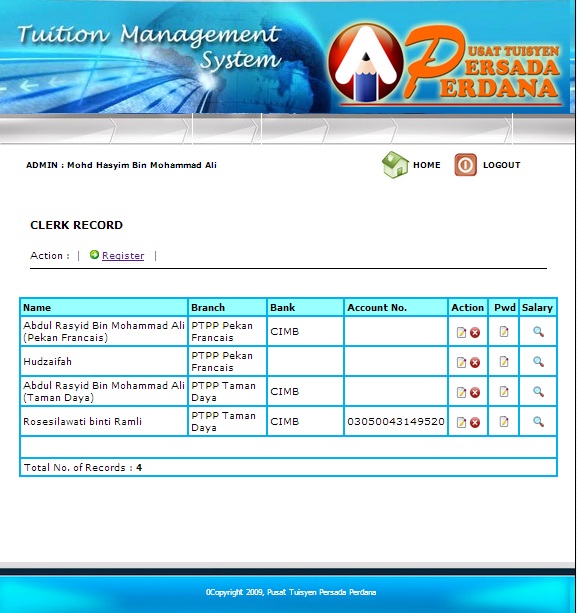 To record fee & payment rate of student, teacher and driver in every branch.