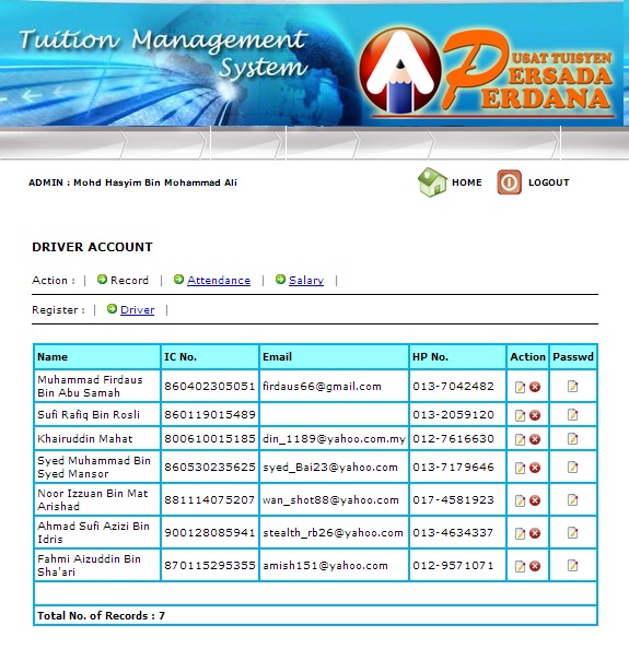 To record driver details, attendance and salary.