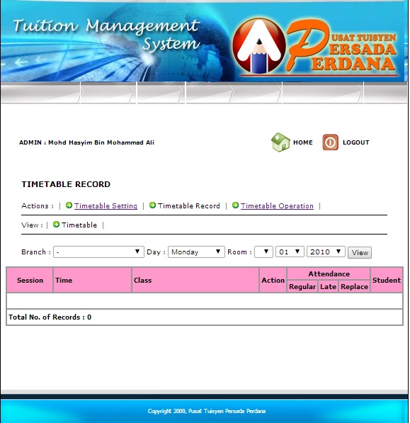 To record timetable operation, session, time and class.